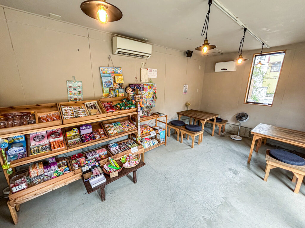 その広い庭に通じる道は、地域の人がフラッと入ってきやすい様に導線が設計されています。その道を入ると、右側にはクランク様が営む駄菓子屋さんがあります。放課後には地域の小学生が遊びに来て、ゲームやお喋りに花を咲かせているそうです。