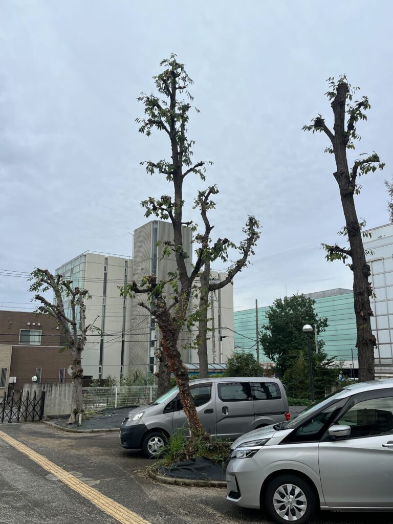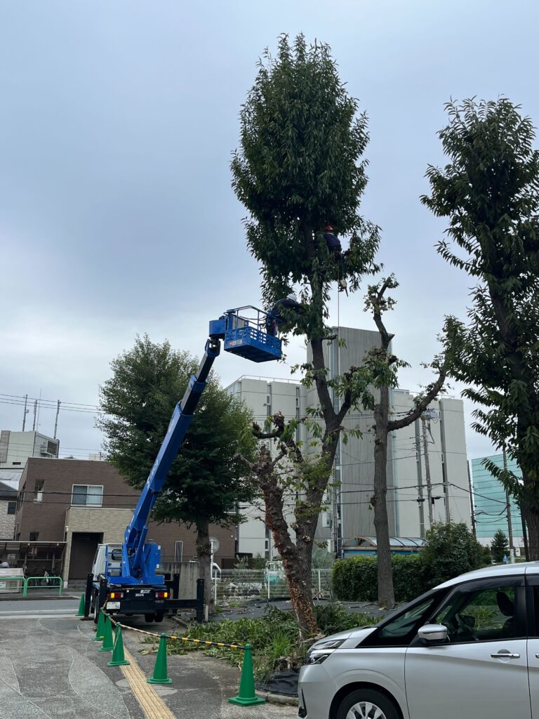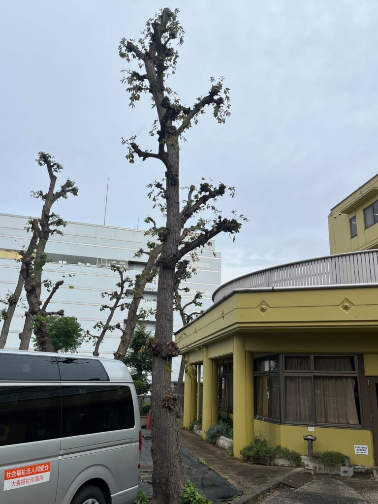 作業所の所庭では、定期的に高い樹木の剪定をしています。