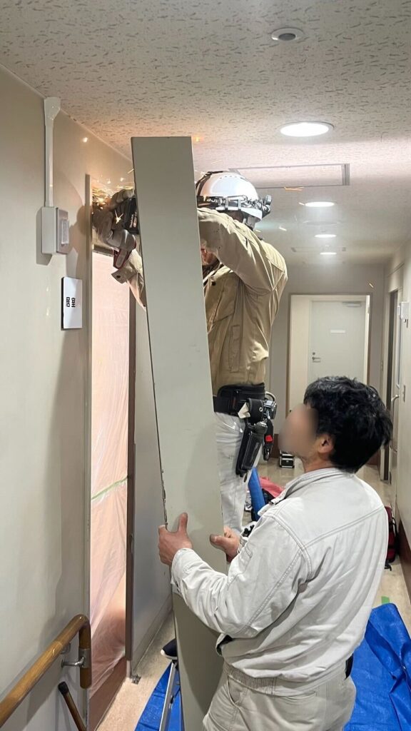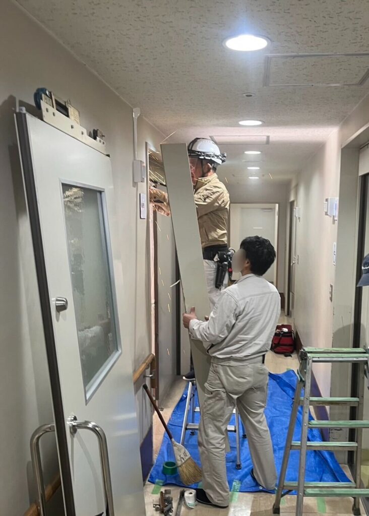 設備の更新の一環として、今回、ドア改修工事(計6ヶ所)を行っています。