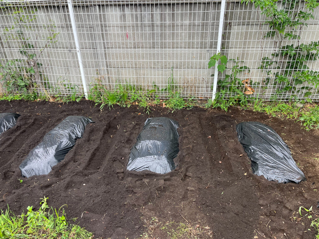 畝のところにマルチシートをつけました。ここから苗を植えていきます。(続く)